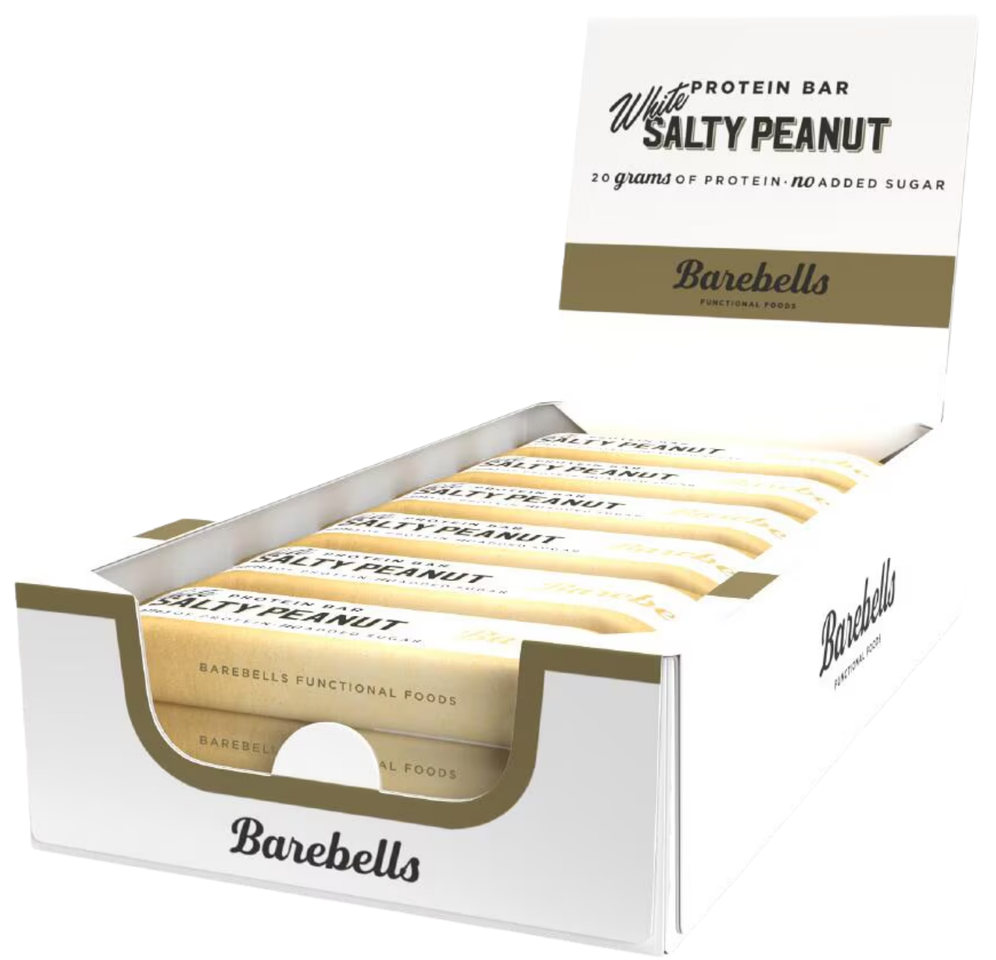 Barebells Protein Bar White Salty Peanut – Protein Bar mit 20 g Protein und ohne Zuckerzusatz (enthält von Natur aus Zucker). Ein saftiger, weicher Kern gehüllt in cremige weiße Schokolade und garniert mit knusprigen goldenen Erdnüssen. Mit Süßungsmitteln. Ohne Palmöl. Kann bei übermäßigem Verzehr abführend wirken. 12 Riegel à 55 g (660 g).